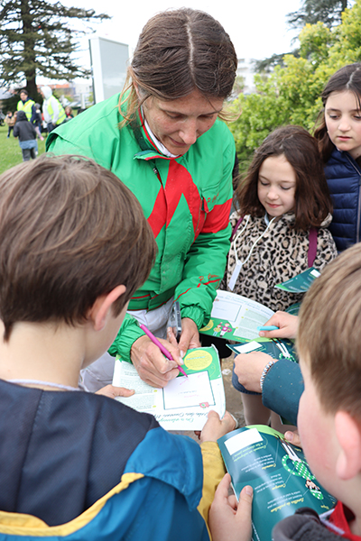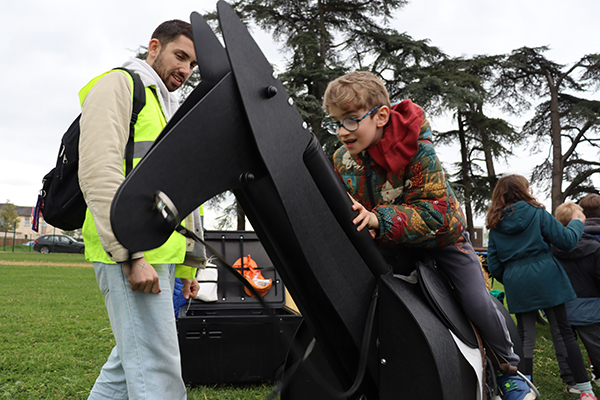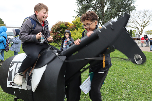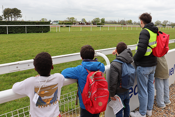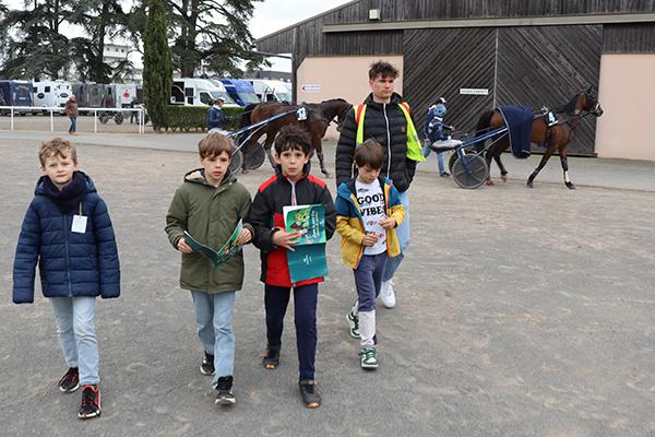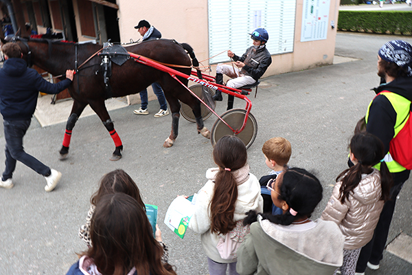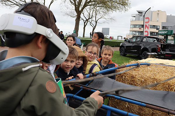 Jumelles sur le nez, les yeux rivés sur la piste, les enfants de l’accueil de loisirs Saint-Paul-des-Genêts suivent avec attention le déroulement des courses, espérant voir leur poulain s’imposer. Les encouragements fusent et animent une tribune bien garnie, ce mercredi 1er avril, à l’occasion du Quinté à l’hippodrome d’Écouflant. Un beau moment pour ces jeunes visiteurs, dont beaucoup découvraient pour la première fois cet équipement dédié au cheval, situé aux portes d’Angers. « Nous avons un projet d’animation autour du sport en cette fin d’année », explique Laurent Bourdais, animateur référent de la sortie. « Cette visite à l’hippodrome s’inscrit pleinement dans notre objectif de découverte du patrimoine et des disciplines sportives. » Bien plus qu’une simple sortie pour assister aux courses, c’est tout l’univers du cheval qui s’est offert à la cinquantaine d’enfants présents. Au programme : découverte des écuries pour approcher de près la centaine de chevaux présents sur le site, observation des sulkys dans les moindres détails, mais aussi rencontres avec les jockeys. Questions à la volée - « Quel âge a ce cheval ? Comment s’appelle-t-il ? Que mange-t-il ? » - et chasse aux autographes ont rythmé ces échanges spontanés. L’immersion s’est poursuivie du côté des stands ludiques, où les enfants ont pu enfourcher un cheval mécanique ou encore vivre une course en réalité virtuelle grâce à un casque connecté. Une belle journée vécue… au petit trot.