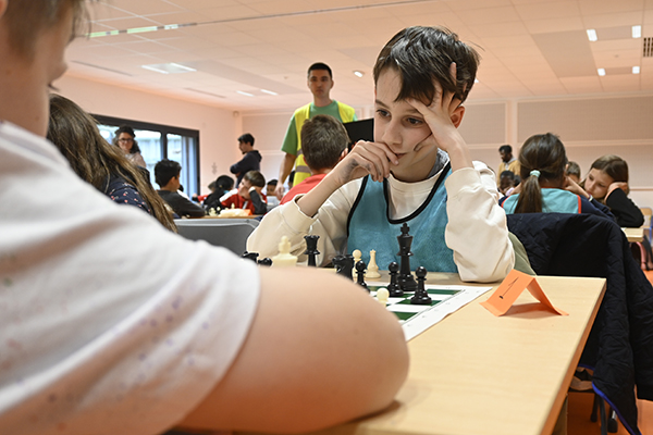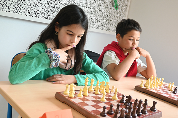 L’ambiance était studieuse à l’accueil de loisirs Les Cabanes du Lac, où s’est tenu le tournoi annuel inter-écoles d’échecs ce vendredi 3 avril. Tout au long de l’après-midi, près d’une centaine d’enfants ont défendu avec enthousiasme les couleurs de leur établissement, après trois mois d’initiation et de pratique lors des temps d’activités périscolaires (TAP), encadrés par des animateurs engagés. Réservée aux écoles de Belle-Beille et du Lac de Maine, cette quatrième édition a exceptionnellement accueilli des élèves de Condorcet, venus se mesurer à leurs camarades. L’objectif était clair : remporter un maximum de parties pour hisser son école en tête du classement et tenter de détrôner l’école Aldo Ferraro, triple tenante du titre. Dans une atmosphère calme et concentrée, les jeunes joueurs ont mobilisé patience, mémoire et sens de l’anticipation. « Ce tournoi est l’aboutissement d’un cycle de trois mois de TAP consacrés aux échecs, avec des groupes pouvant aller jusqu’à 18 enfants », expliquent les animateurs référents — Jason, Thomas, Violette, Alexandre, Mathieu et Daouda. Pour certains, ces séances ont été l’occasion de découvrir le jeu et ses règles ; pour d’autres, d’affiner leur stratégie en vue de cette rencontre. Organisé sous la forme d’un tournoi montant/descendant, l’événement a permis à chacun d’affronter des adversaires de niveau équivalent, favorisant des parties équilibrées, motivantes et valorisantes. Après plus d’une heure de jeu intense, le verdict est tombé : pour la première fois, l’école du Bois de Mollières s’imposait, avec une courte avance sur Jean Rostand, éternel second de ce tournoi. Vivement l’an prochain !