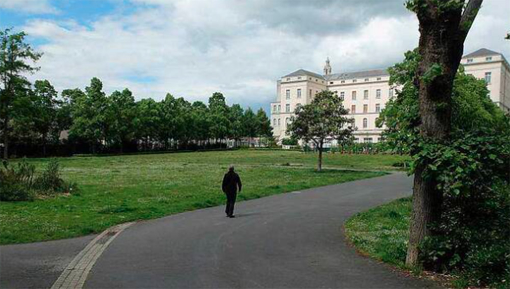 Devant le bâtiment qui abrite les locaux de l’Orchestre national des Pays de la Loire depuis 1983 et ceux du Conservatoire d’Angers (Maine-et-Loire), s’étend le parc Bellefontaine sur 12000 m². Il attire les habitants des nombreux immeubles voisins.