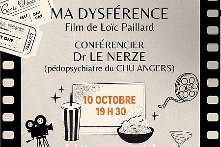 Le nouveau bureau de l’APEDYS 49 a le plaisir de vous inviter à son premier grand rendez-vous à l’occasion de la Journée Nationale des DYS. Les Dys sont un trouble du neurodéveloppement (TND) et qualifié de troubles des apprentissages affectant le langage écrit (dyslexie), le langage oral (dysphasie), la motricité fine et globale (dyspraxie), … et se traduisant notamment par des difficultés scolaires pour les enfants malgré une intelligence totalement préservée. Au programme : la projection d’un film suivie d’un échange avec le Dr Le Nerzé, pédopsychiatre au CHU d’Angers, pour répondre à vos questions. Nous aurons également l’honneur d’accueillir M. Guernigon, député de la première circonscription.