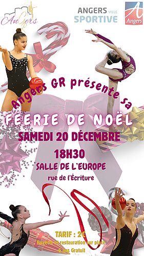 À partir de 3 ans, 120 gymnastes d'Angers Gymnastique rythmique vous présenteront leur grand spectacle de Noël sous forme de parcours dansé, sur le thème “Féérie de Noël”. Découvrez également les enchaînements individuels des gymnastes en compétition, qui concourent au niveau régionales, et sont en lices pour le championnat de France.